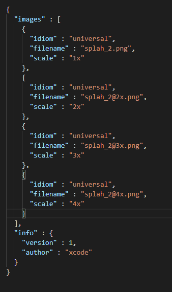 이미지 파일을 변경해주세요. @2x.png , @3x.png , @4x.png 로 변경해주신 다음에 코드에서 변경해주시면 ios splash도 저장 후 실행을 하셔서 확인하시면 변경 된 것을 확인 할 수 있습니다.