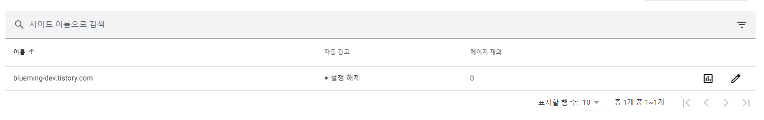 팝업을 닫으시면 이렇게 현재 본인이 가지고 있는 블로그 주소가 보이는데요, 리스트 끝에 연필 모양이 보이시나요? 연필 모양을 클릭해주세요!