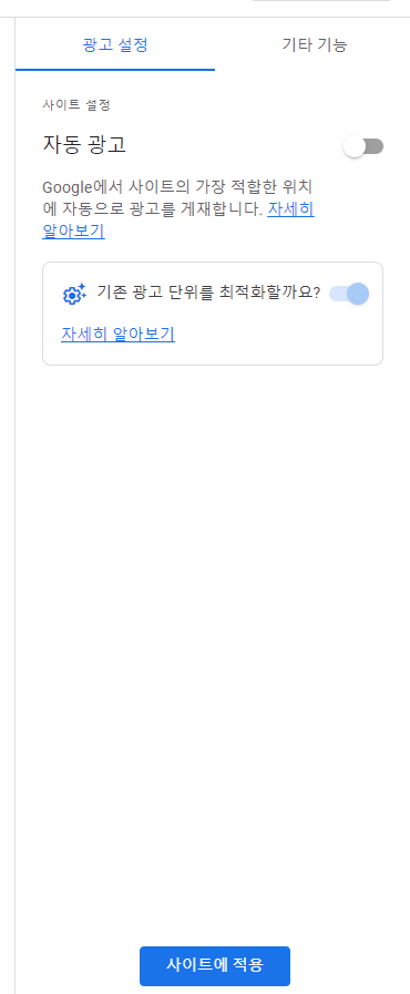 조금만 기다려 달라는 상태 창이 나옵니다. 그 옆에 광고를 설정할 수 있는 설정 레이아웃에서 자동광고를 체크해주시면 블로그 상세페이지에서 광고가 들어가는 레이아웃이 나와요! 그럼 그 레이아웃에서 원하시는 만큼의 광고를 체크해주시면 됩니다! 완전 간단하죠! 마지막에 사이트에 적용 버튼을 꼭! 눌러주세요. 변경시에 추가했던 코드가 변경되지는 않는다고하네요. 테스트도 해볼 수 있다고 하니 필요하신 분들은 해보시는게 좋겠죠? 오늘도 고생하셨고, 좋은 하루 보내시길 바랍니다.