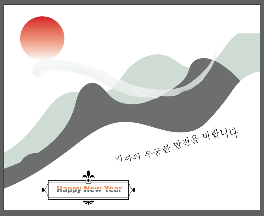 어딘가 엉성하지만 그래도 여우 한 마리 더 완성! 펜툴로 그리는 건 더 많이 해야 금방 늘 것 같아요. 옆에 카드에는 신년을 맞이한 두루미가 같이 있어야 하는데, 시간이 모자라서 두루미 빼고 브러쉬로 작업해야 하는 것 까지는 완성입니다. 그래도 그라데이션이랑 브러쉬 사용에는 많이 익숙해진 것 같아요! 오늘도 힘들지만 작업 끝 !