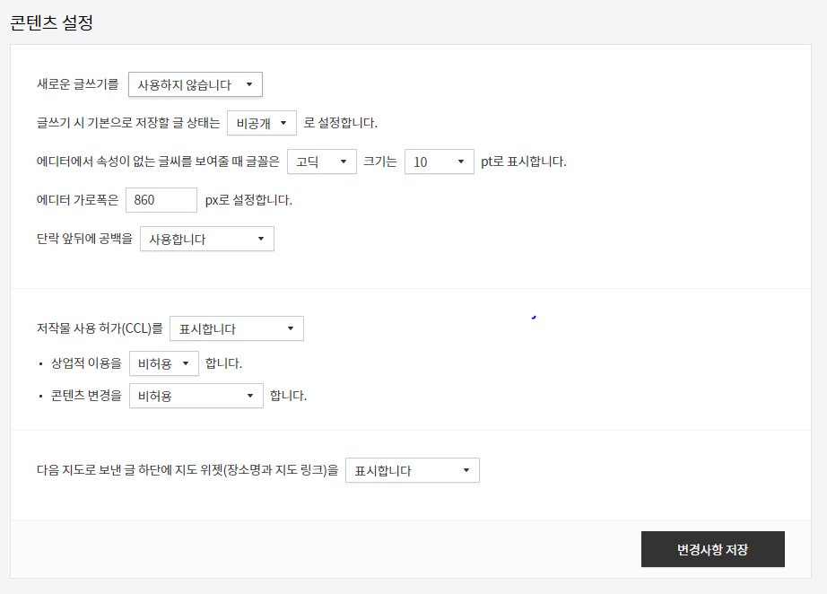 블로그 콘텐츠 설정에서 새로운 글쓰기를 사용하지 않습니다. 로 설정해주세요! 변경사항을 저장하시고, 내 블로그에 글쓰기를 클릭해주세요.