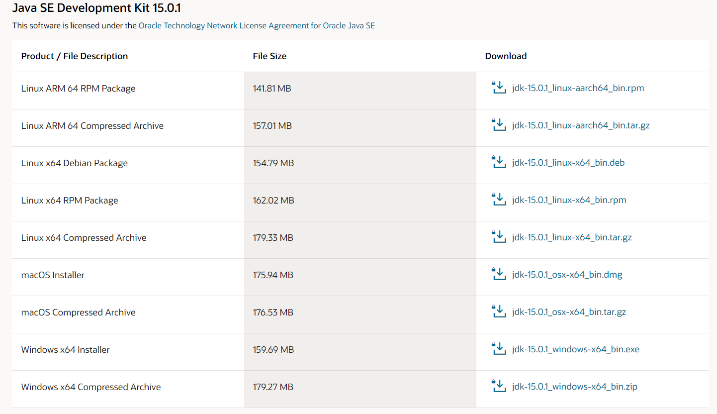 저는 최신 버전을 다운로드 받았습니다 Java SE 15 -> Oracle JDK Download 파일을 다운로드를 받아주세요 ! (원하시는 버전으로 다운로드를 받아주시면 됩니다)