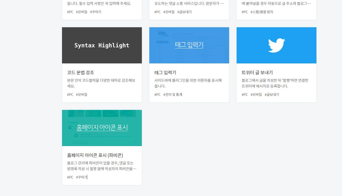 블로그 관리 메뉴에서 플러그인을 찾아주세요. 네이버 블로그로 따지면 위젯이랑 비슷한 개념인 것 같습니다.