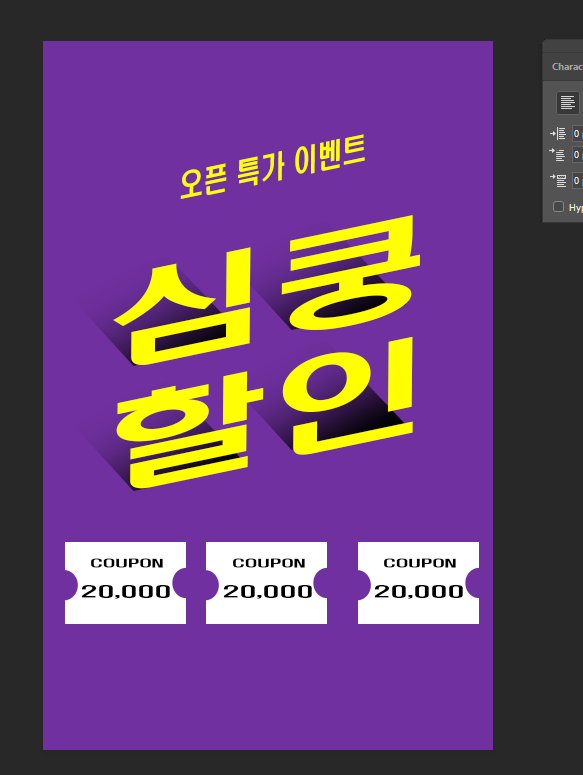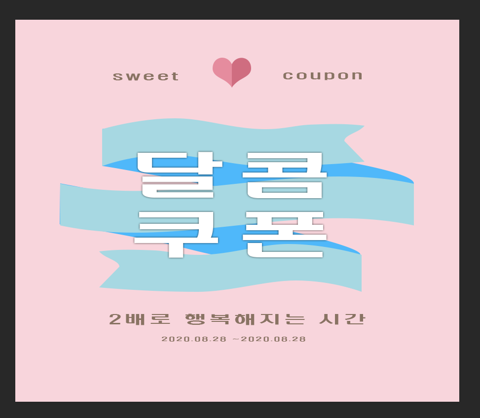 선생님이 주신 예제랑 조금은 다르지만, 폰트가 없어서 다른 걸로 해도 된다고 하셨어요. 밑에 쿠폰이 조금 엉성하고, 금액도 안 바꿨지만, 포스팅은 먼저 이렇게 올립니다. 7시반에 와서 그냥 조금만 뭘 하면 시간이 호로록 사라져요. 퇴근하고 뭔가를 배운다는 건 정말 너무 힘든일이지만, 그렇다고 아주 못할 일은 아닌 것 같습니다.