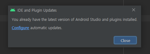 더 누르니까 창이 나오네요. OK -> Close를 눌러 마무리! 처음에는 안드로이드 스튜디오 버전 업데이트를 몰라서 찾아봤던 기억이 나네요. 오늘도 정리하나 끝.