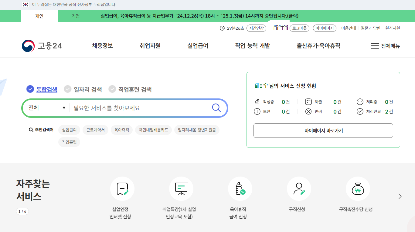 2024년도 고용24 페이지가 개편되고 나서 포스팅을 찾아보면 UI가 변경되어서 여기저기 조각처럼 정보 수집 후 신청이 완료되는 것 같다.